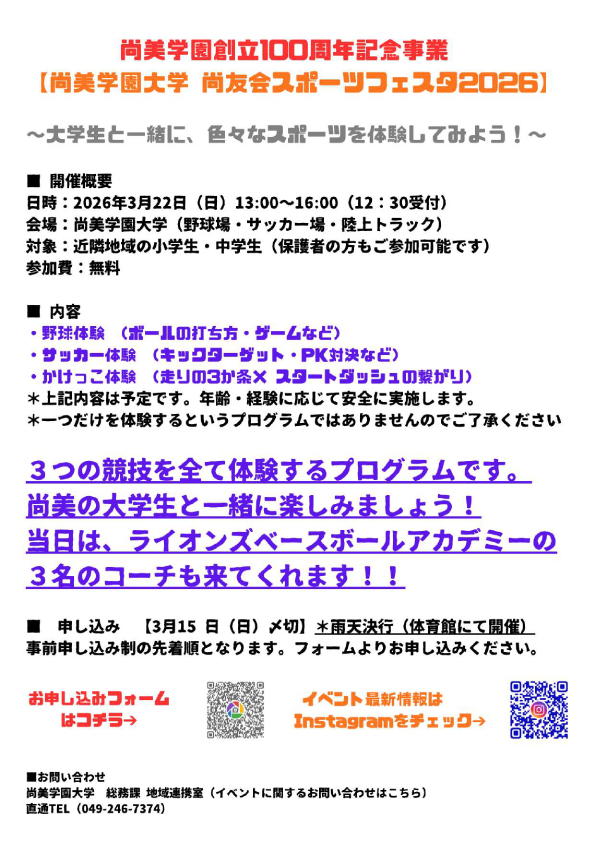 【尚美学園大学尚友会スポーツフェスタ2026を実施いたします!】